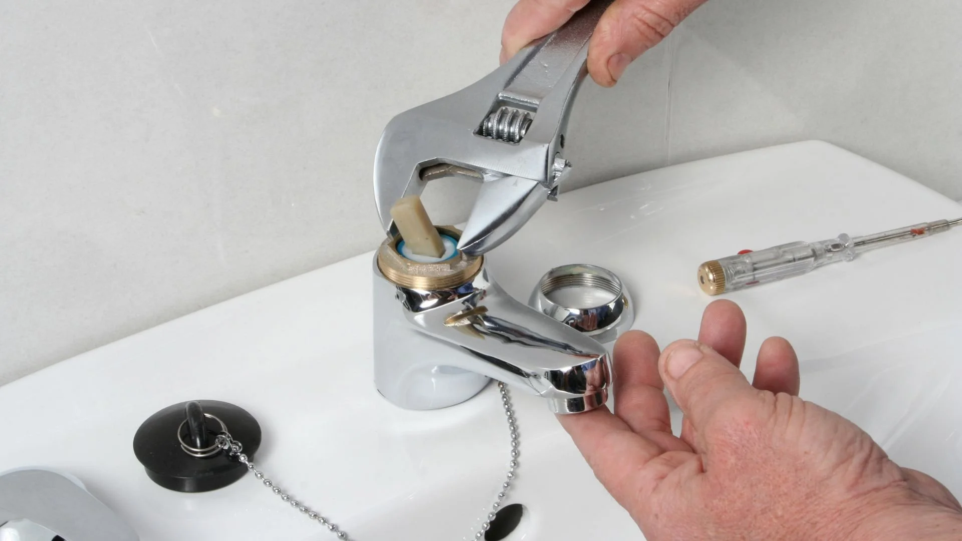 Our team replaces the full pop-up drain assembly, ensuring watertight performance, smooth operation, and reliable drainage for your bathroom sink.